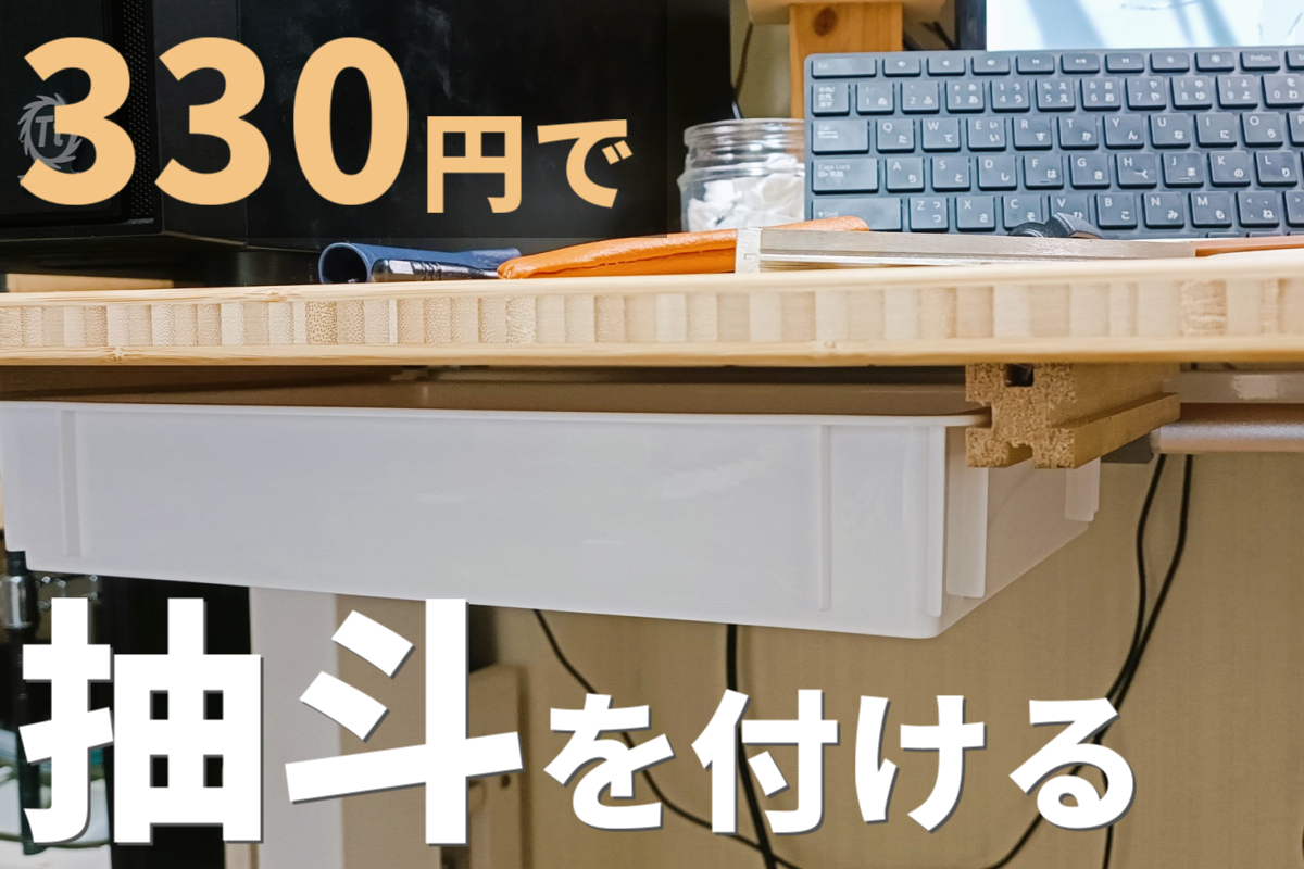【DIY】総額330円!百均商品でデスク下に抽斗を付けた